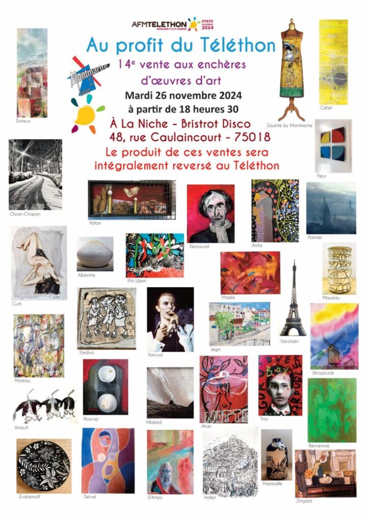 Chaque année des artistes d’Anvers aux Abbesses offrent des oeuvres d’art destinées à la Vente aux enchères caritative au profit du Téléthon.