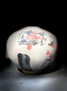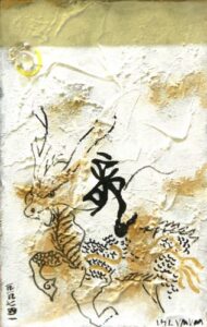 Récemment en 2024, nous étions heureux que tu sois le lauréat des Émiles et de voir ainsi l’une de tes œuvres, une petite sculpture humaine, entrer dans la collection de l’association. Ce fut également le prétexte de t’offrir une exposition monographique d’une semaine, rue Ramey. Tu choisis «ŒKOUMÈNE» comme titre. La géographie et la pratique artistique s’unirent cette fois encore dans ton travail. Espace de vie des hommes à la surface de la planète, exprimé et revisité par le geste et la matière qui te guidait à la surface de la toile.