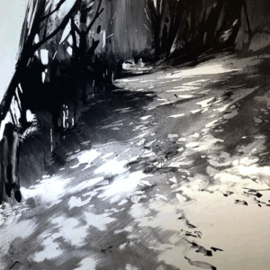 La couleur noire du bitume c’est la couleur des origines. Le pétrole s’est fait lumière, quand il a remplacé l’huile des lampes. Cette lumière qui provient du plus profond de la terre, c’est celle du bitume, celle qui jaillit de sa couleur sombre mais qui décline aussi toutes ses nuances, brûlures, cicatrices, calcinations.