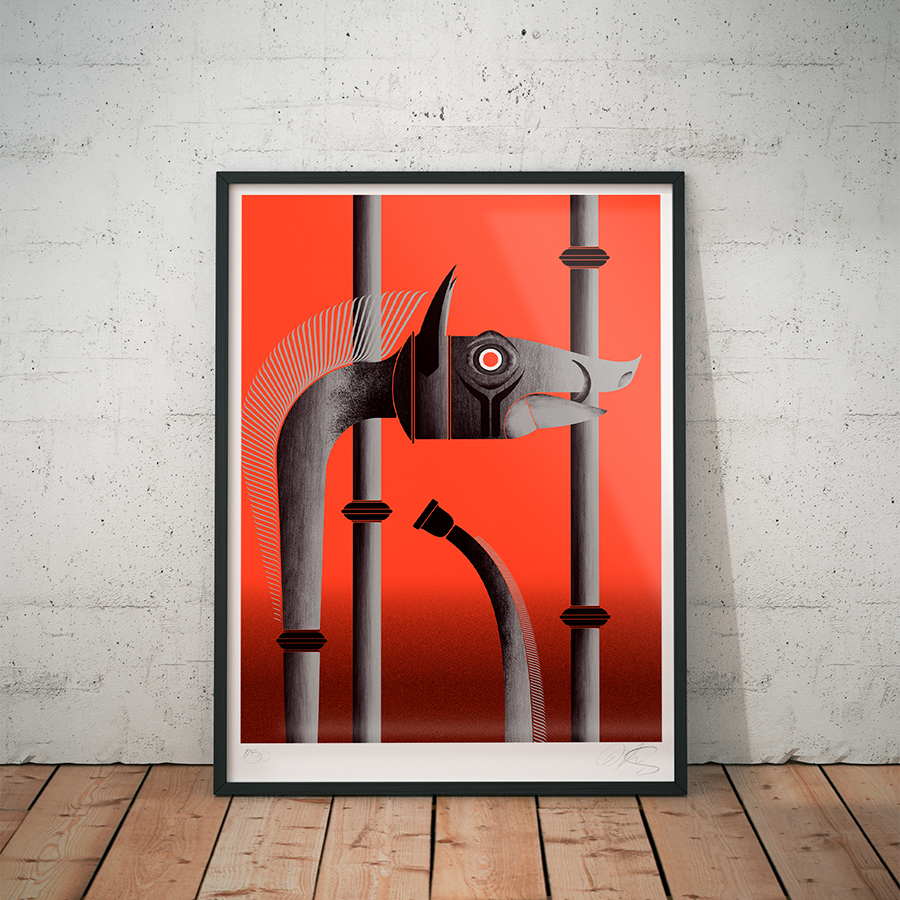 Dessin, digital art & colorisation numérique – Tirage en subligraphie sur plaque d’aluminium.
