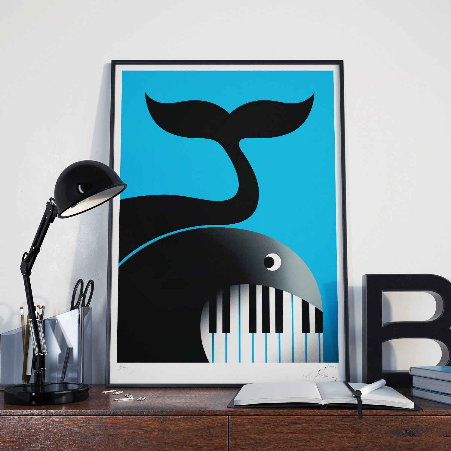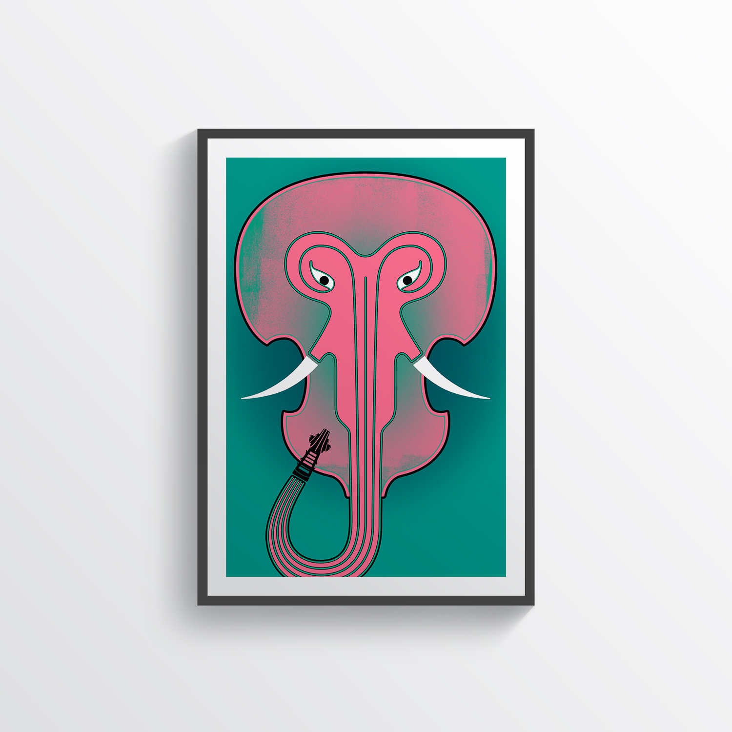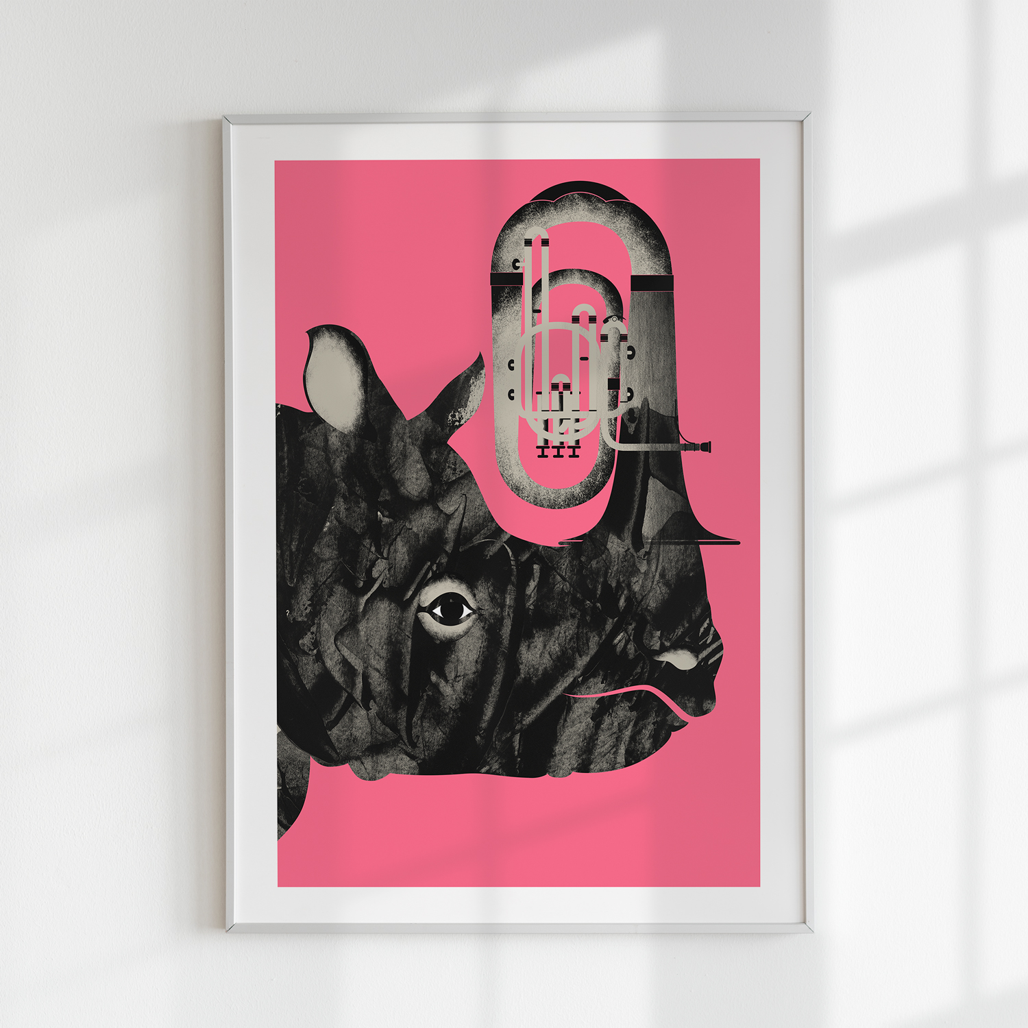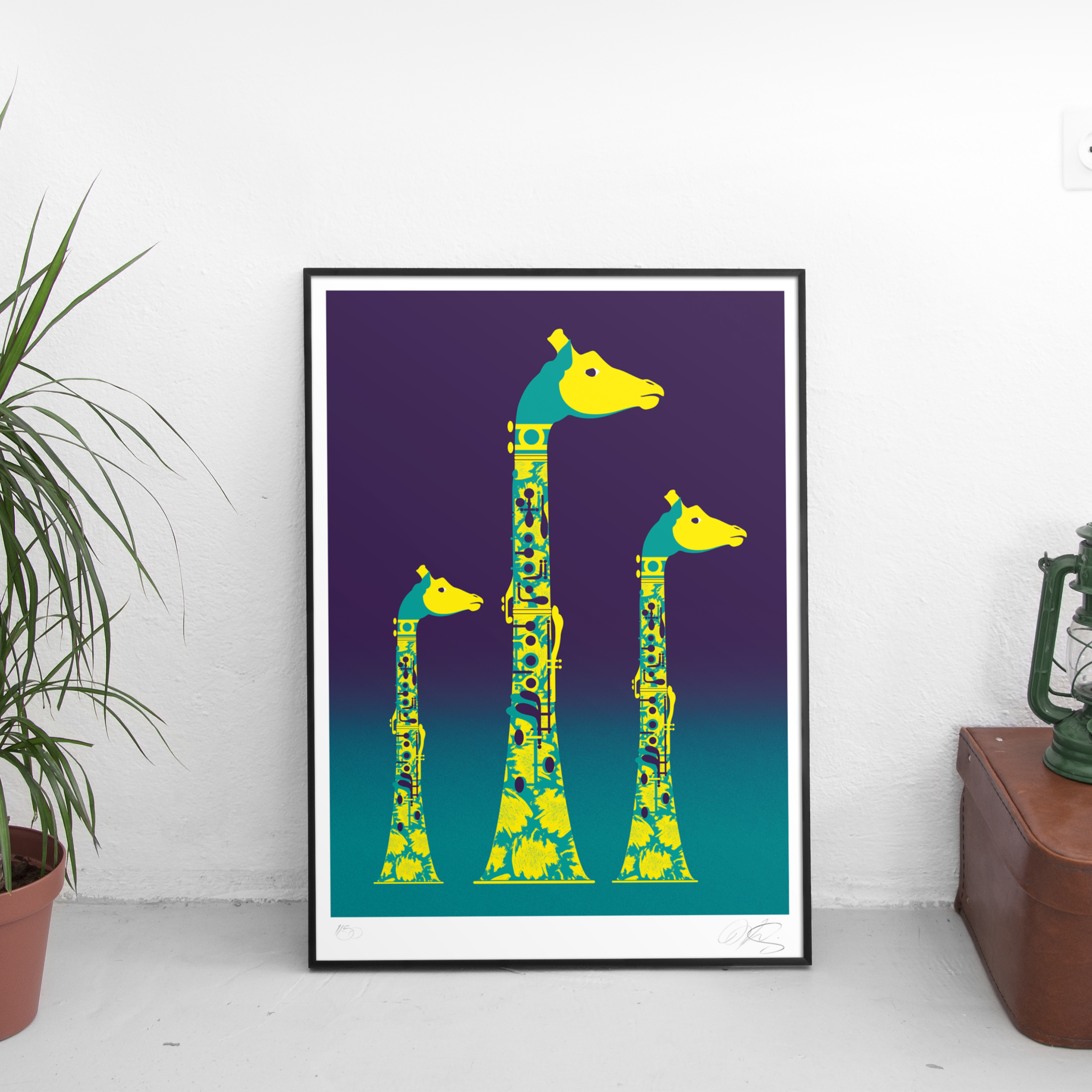 Christophe Andrusin puise dans un imaginaire très personnel la conception d’affiches dédiées à l’univers de la musique, et plus précisément du jazz. Il y a longtemps qu’au sein de son studio de création pommeCpommeV, il donne à voir des « images-signes » qui résonnent, où les compositions mettent en valeur un message traité comme un moyen d’expression à part entière. Avec les Z’anim Instruments, la ligne de l’outil musical remonte le fil graphique de l’animal et se transforme en bestiaire inattendu. Les couleurs primaires rayonnantes et les techniques mixtes apportent la matière. L’expérience devient une valeur polysémique universelle que chacun comprend. Le principe est simple et l’impact instantané. Christophe Andrusin s’amuse à, brouiller les pistes, à mélanger les icônes, à métamorphoser l’esquisse et la rendre magique.