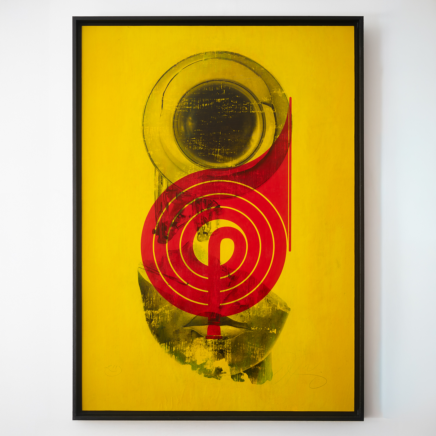 Techniques mixtes : sérigraphie (tirage N°2/15), peinture en acrylique et transfert d’encre