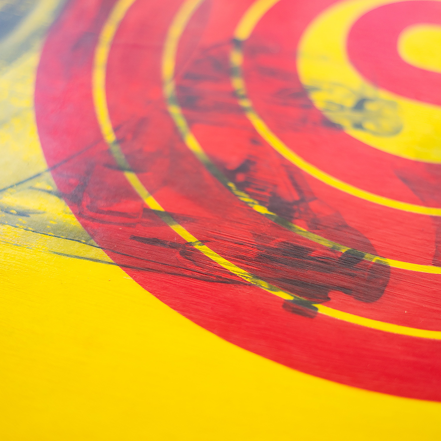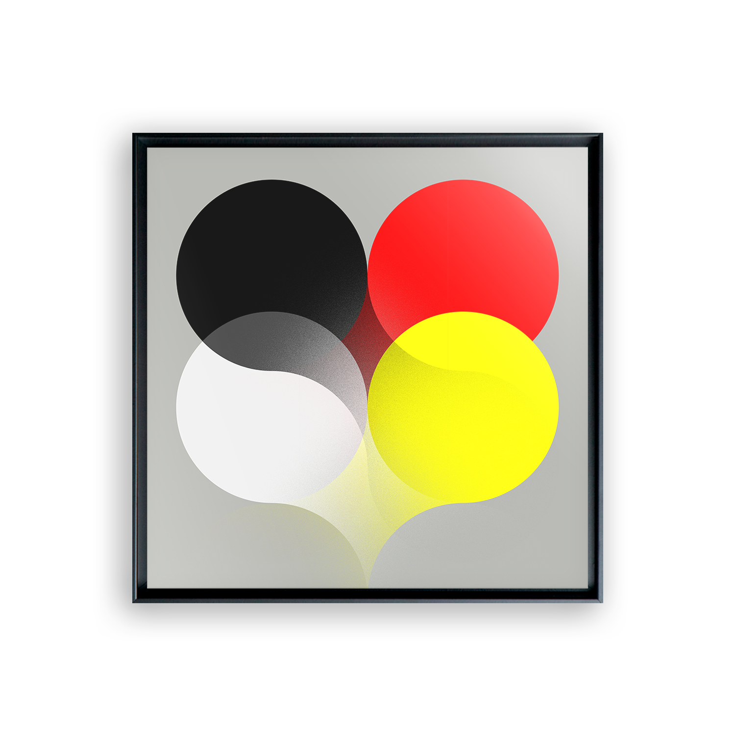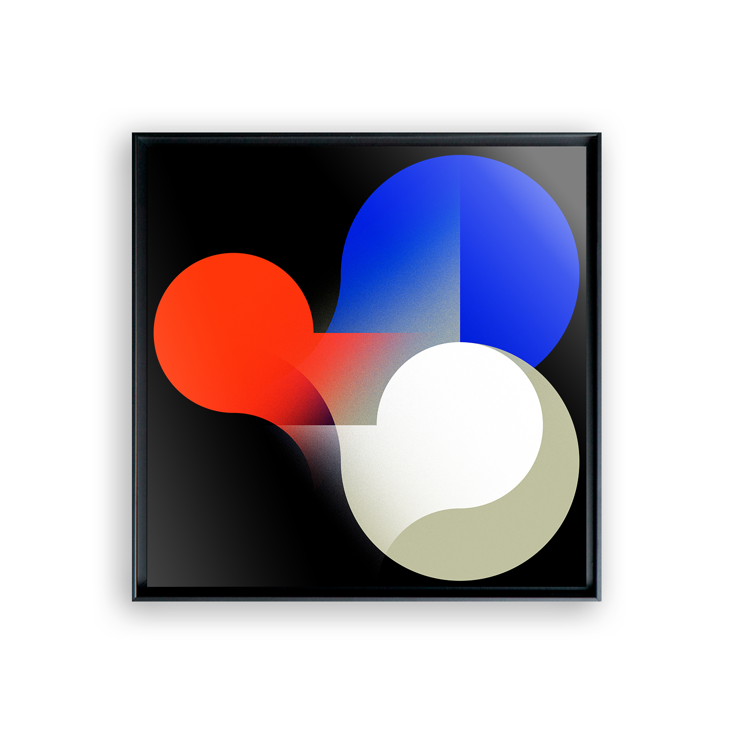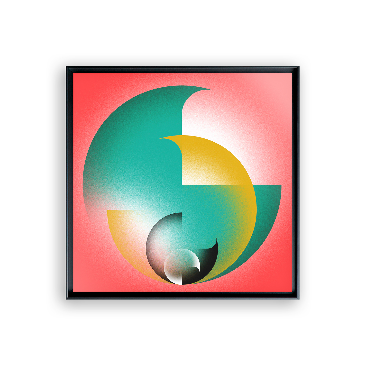 Composé d’images géométriques, de symboles polysémiques, de dégradés de matières et d’une palette de couleurs éclatantes, Square & Sphere fait écho aux formes circulaires, Rythmes et Rythmes sans fin de Robert Delaunay ou encore les Target de Jasper Johns. Et pour immortaliser l’expression du mouvement dans cette nouvelle série de tableaux, l’onde sonore du futur retentit en subligraphie.