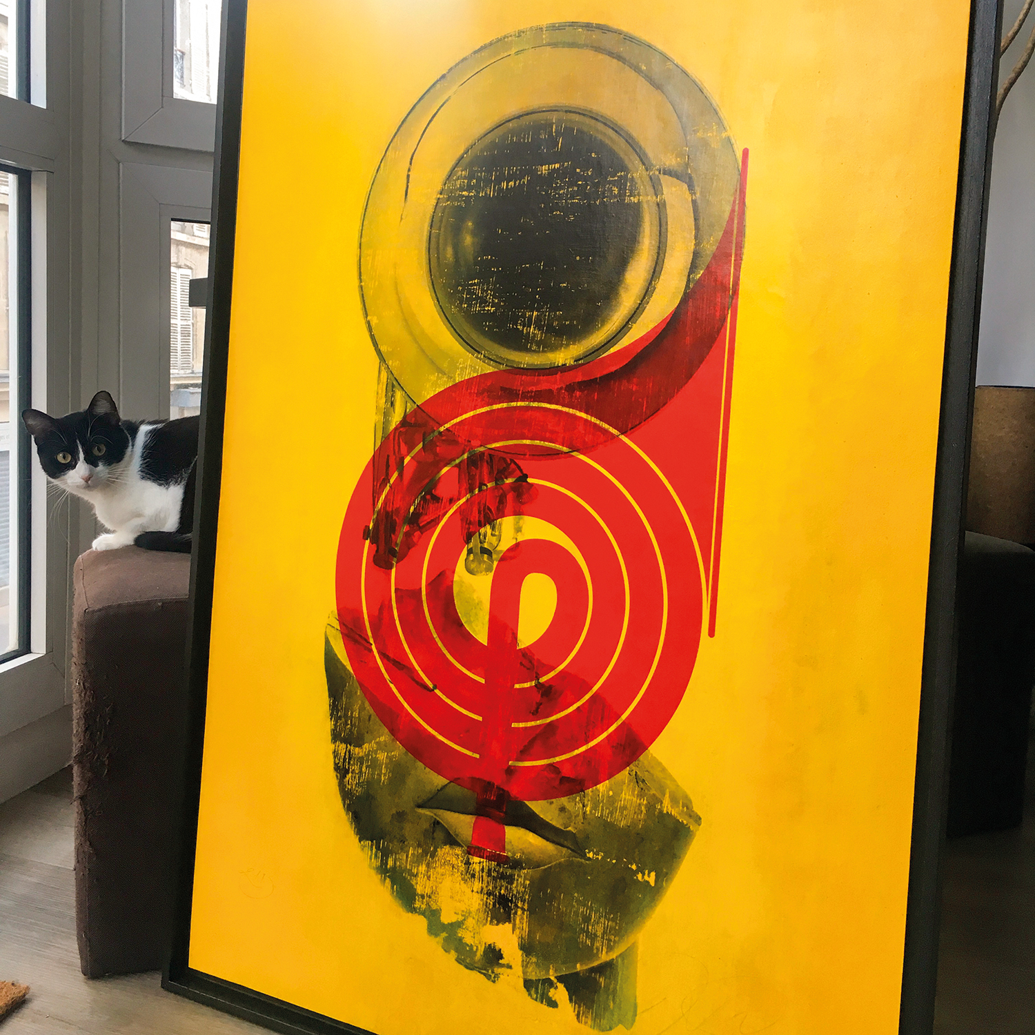 Je conçois l’image comme une partition silencieuse. À chaque œuvre, je cherche à créer un impact visuel immédiat et sensoriel, où le regard écoute. La lettre devient matière. Le symbole se fait son. La couleur claque comme une note, la texture vibre comme un accord. Mon approche est synesthésique, nourrie par ma passion pour la musique, mais aussi par l’histoire des arts graphiques, de la typographie au Pop Art.