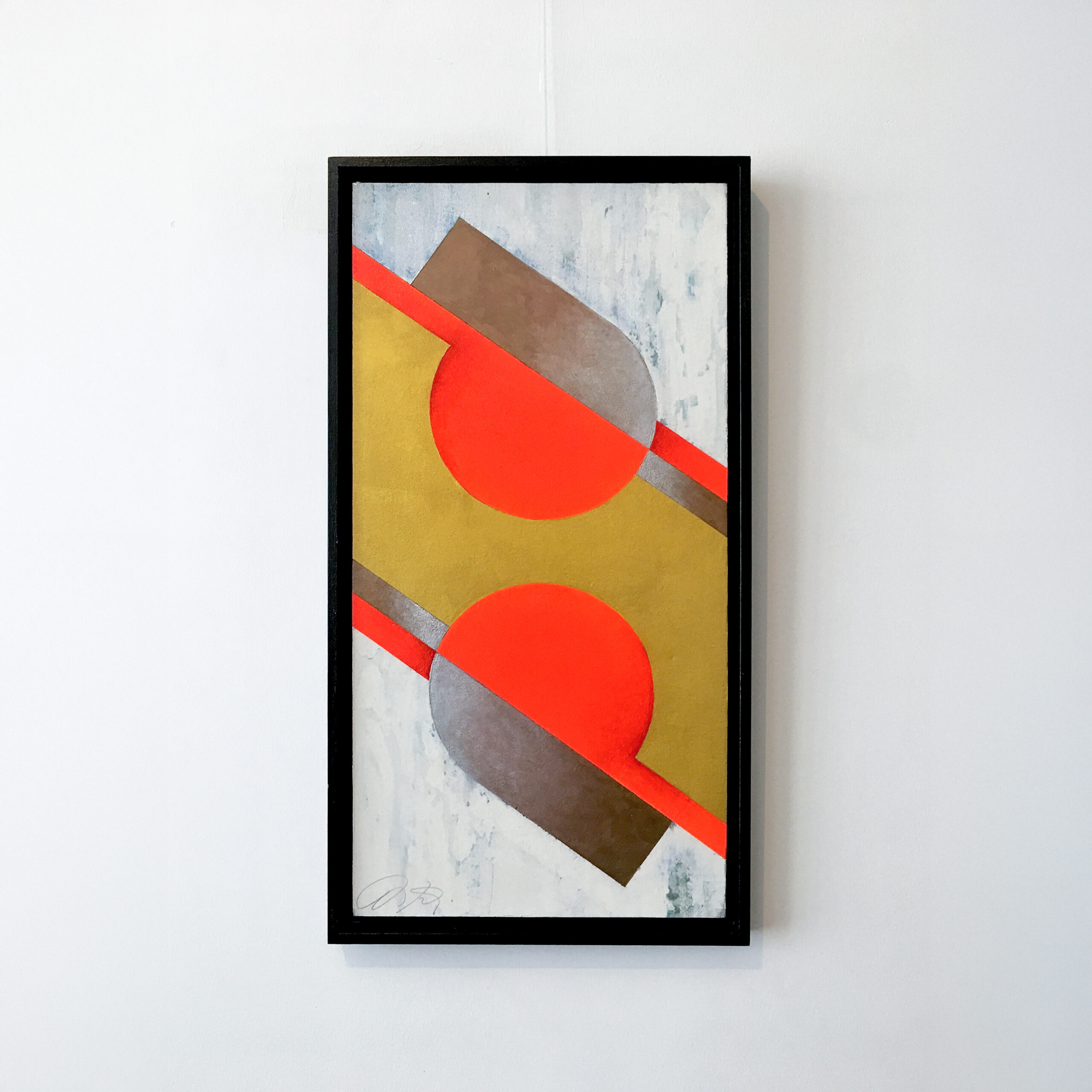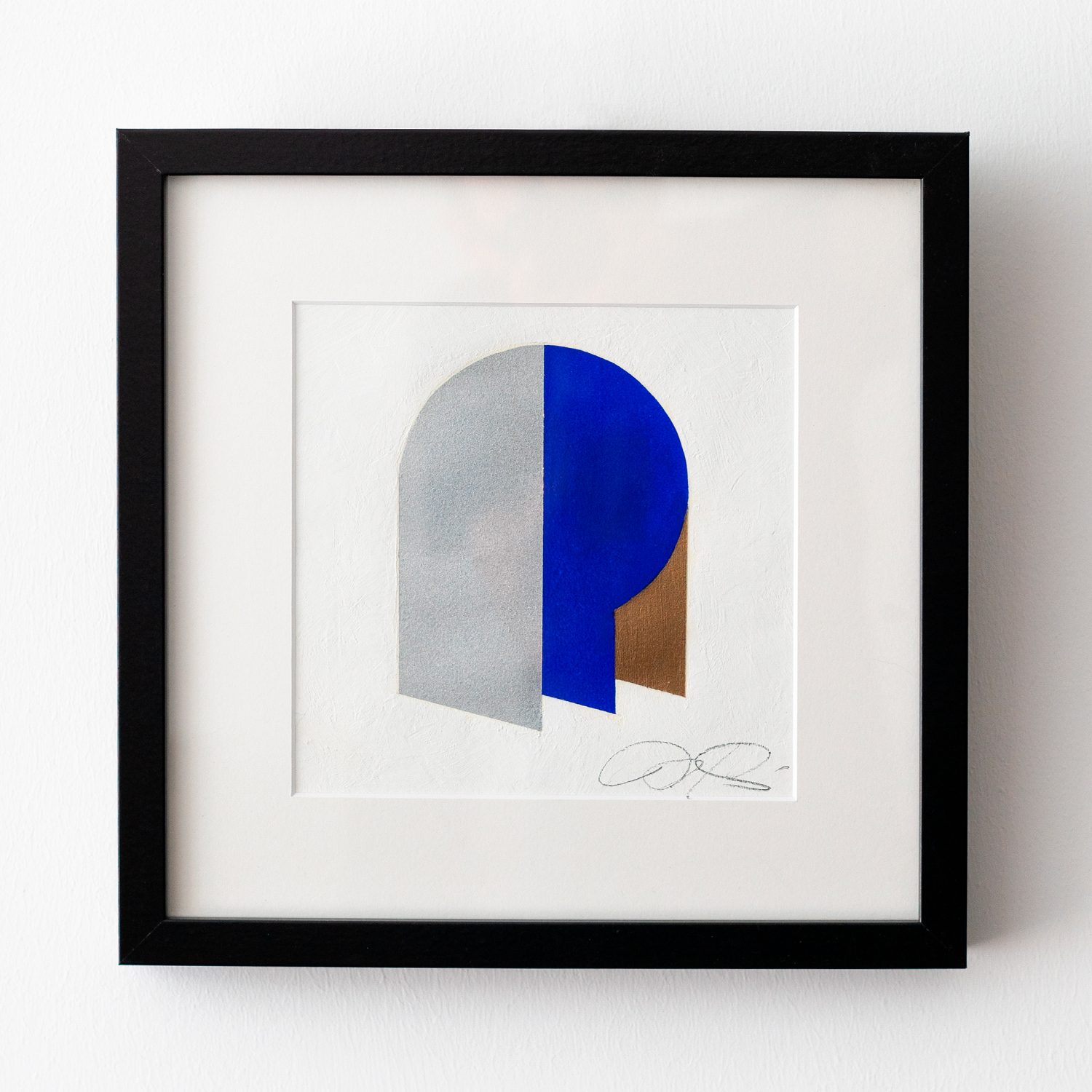 Depuis, j’ai engagé une nouvelle série sur le portrait féminin, composée de formes géométriques simples évoquant des visages abstraits. Cette série s’inscrit dans une démarche influencée par le Bauhaus, où la rigueur formelle, la stylisation des figures et l’économie des moyens dialoguent avec la subjectivité de la représentation. Il ne s’agit pas de portraits figuratifs, mais d’évocations sensibles, de présences minimales et graphiques, à la fois symboliques et ouvertes à l’interprétation.