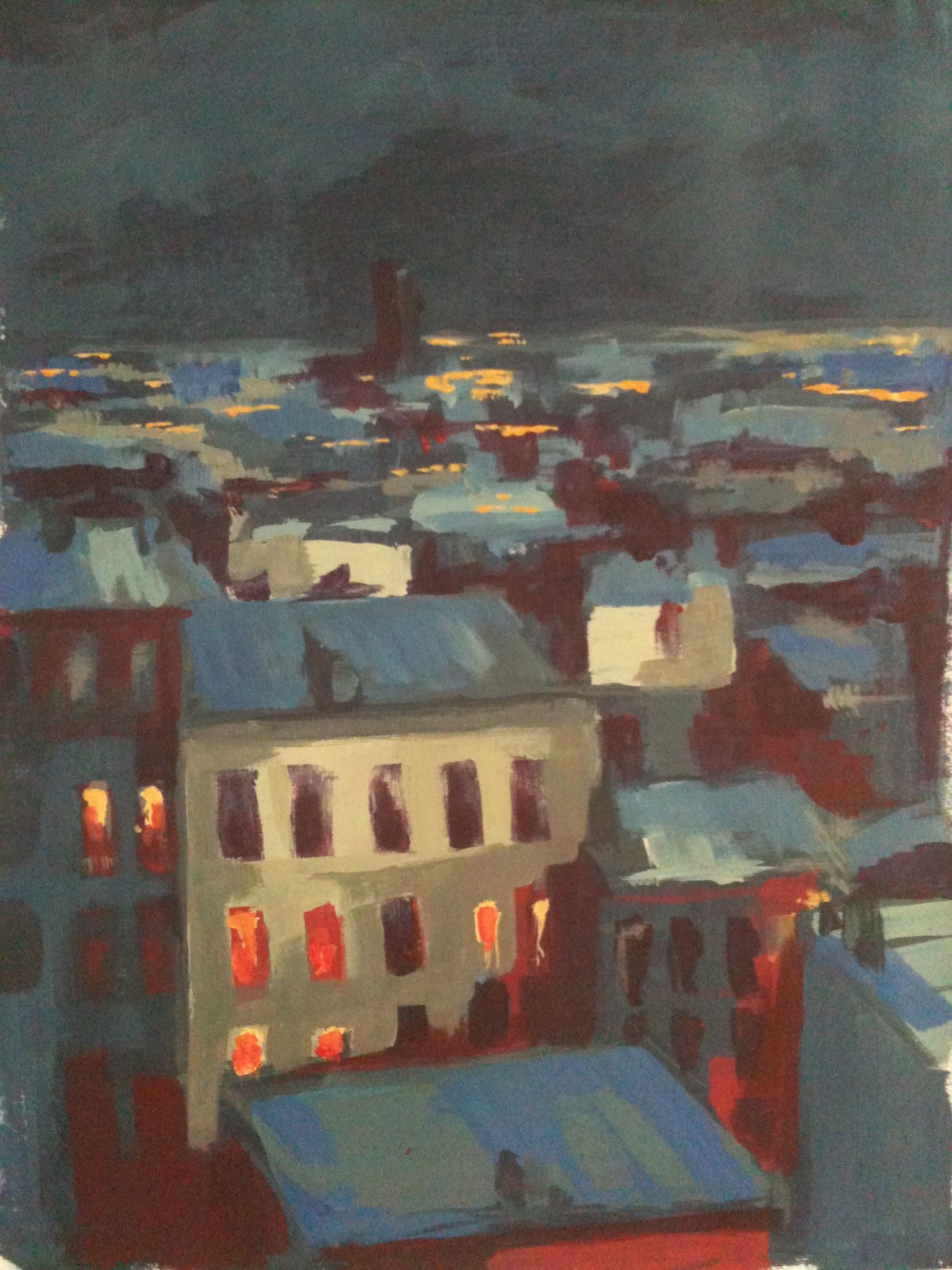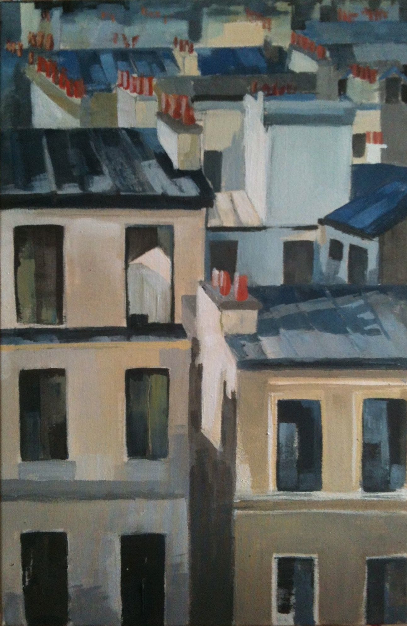 En atelier, je peins à l’huile, à l’acrylique des modèles vivants et des natures mortes. Ailleurs, je peins ce que mon entourage m’offre de décors et lumière, ce qui me porte tout naturellement à représenter la ville comme nature minérale.