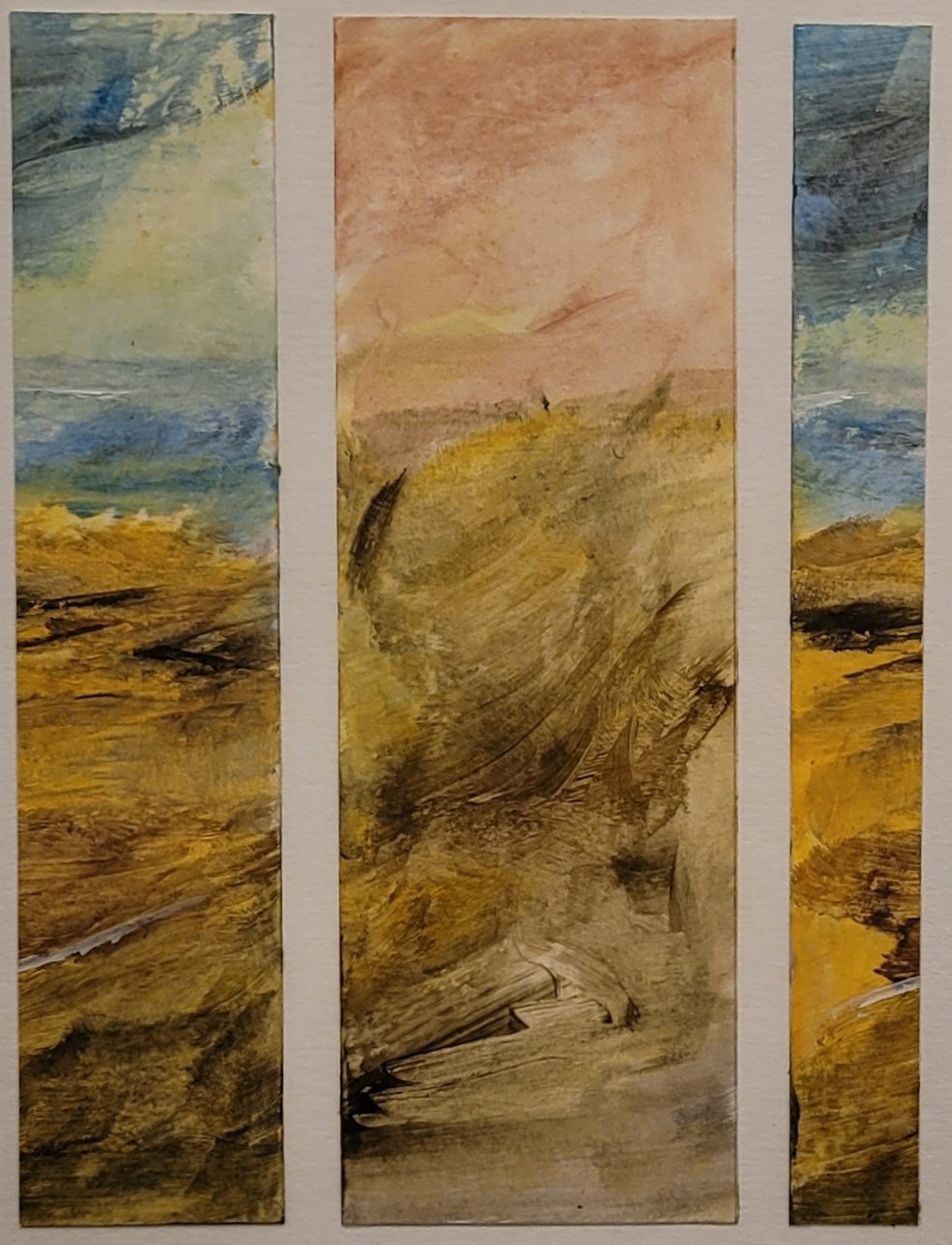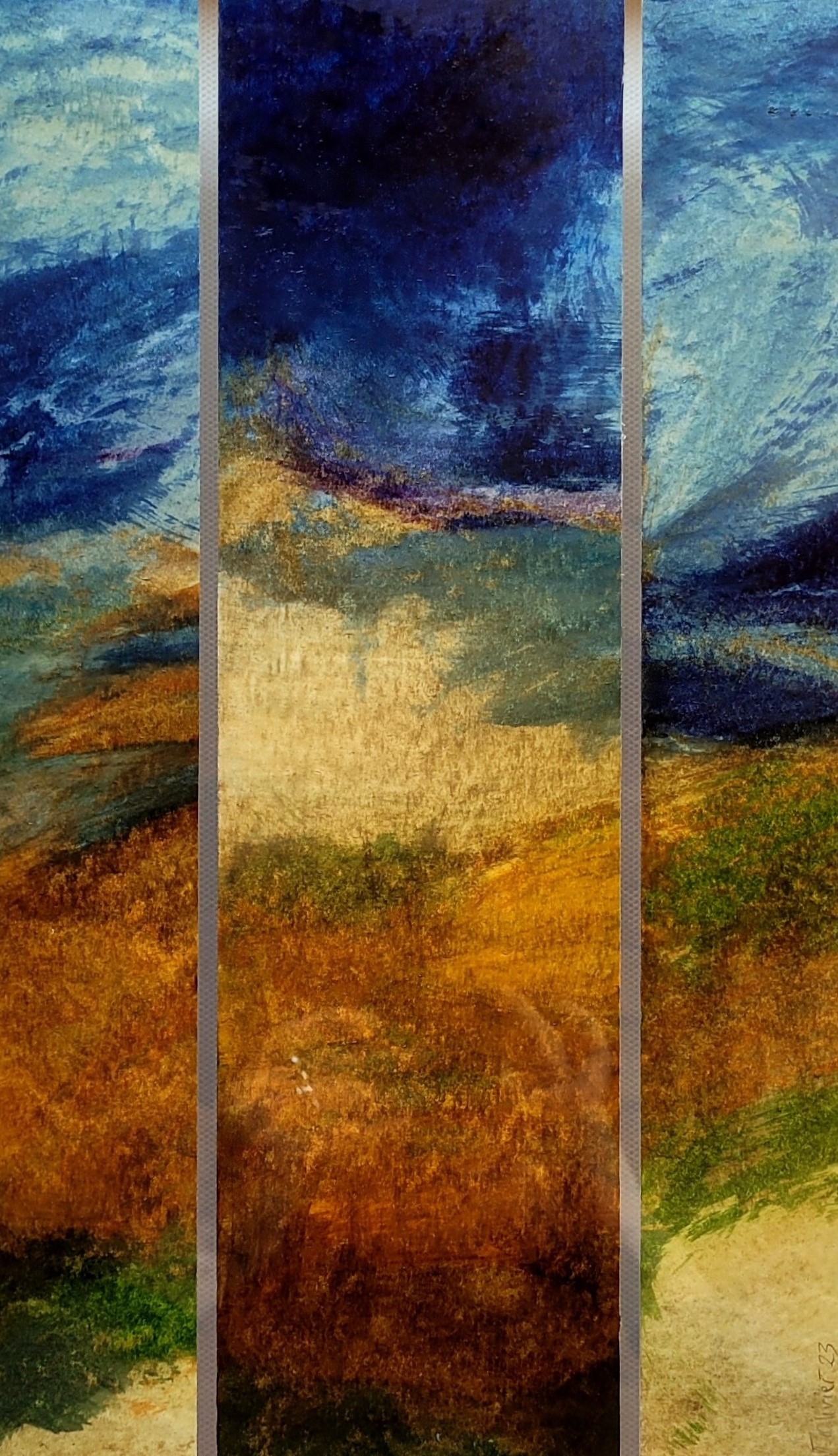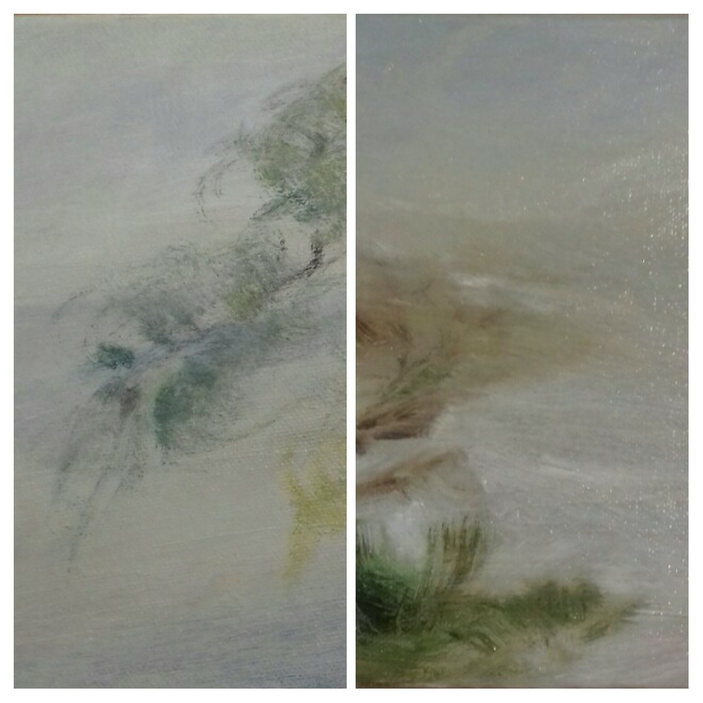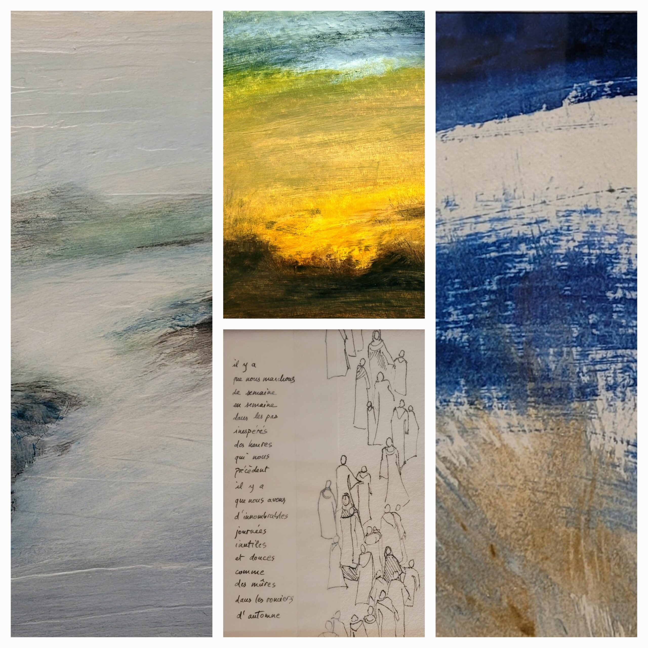 J’ai ensuite opéré une synthèse entre mes expériences professionnelles de la voix et du corps et mes approches en arts plastiques en animant des ateliers de créativité multiple. Depuis quelques années, outre cette activité d’enseignante-animatrice, j’ai ressenti le besoin de revenir à la peinture à l’huile, d’en vivre la texture, la richesse et l’exigence. Je peins des présences, ou des âmes va savoir, et des paysages “intérieurs”inspirée par des espaces aux confins du visible et de l’invisible.