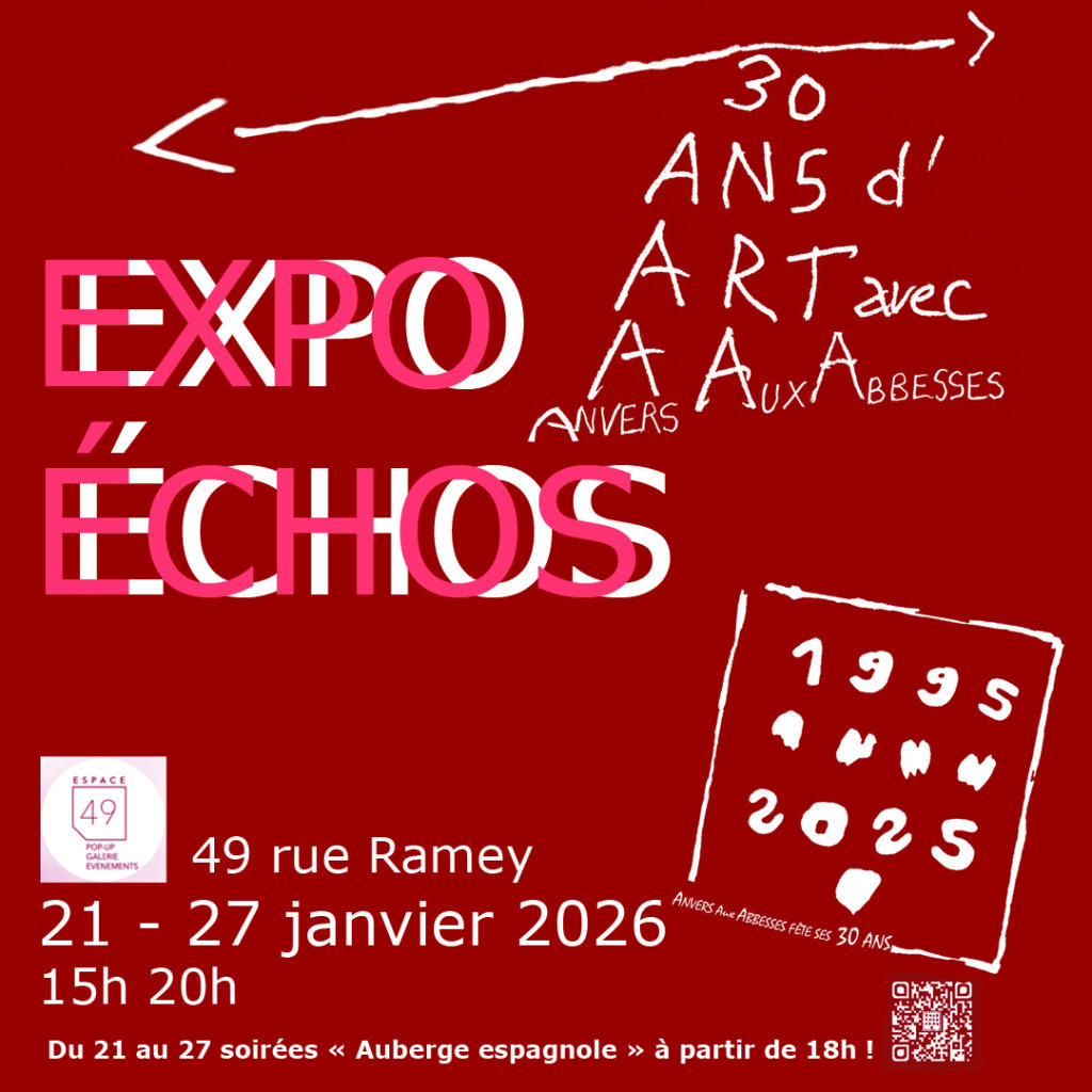 Dans le cadre des 30 ans festif d’Anvers Aux Abbesses, « Expo-Échos » vise à encourager les échanges artistiques entre artistes.