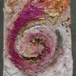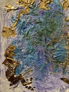 Les feuilles d’or, les strates de pigments et les textures telluriques traduisent la densité du son et sa capacité à purifier, à harmoniser, à reconnecter la matière à la lumière.